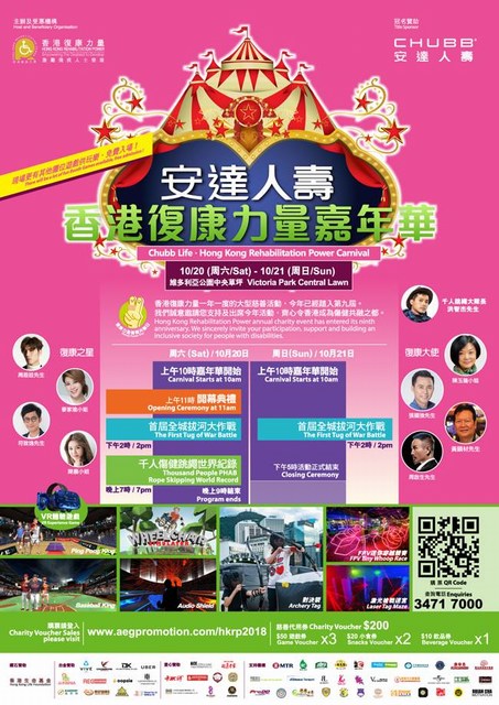 今天是由「香港復康力量」主辦的「香港復康力量嘉年華」(圖片),在香港維多利亞公園舉行的「最多傷健人士同時跳繩」世界紀錄挑戰活動。我們一早便到達維多利亞公園準備(圖片)。下午六時許儀式正式開始,先由主禮嘉賓致詞(圖片),然後是冠名贊助支票贈送儀式(圖片),跟著世界紀錄挑戰活動便正式開始了。 大會預先在公園的草坪上用繩子劃出了多個區塊,以安排各個不同團體的傷健人士進場坐下(圖片)準備,並每人獲發「七彩閃光跳繩」一套(圖片)。這「七彩閃光跳繩」是大會專門為了今次活動而特別訂製的,繩子內放置了五光十色的彩色閃光燈,晚上當一千人同時揮動繩子跳繩時,場面肯定會十分震撼! 晚上七時左右經「世界紀錄協會」(World Record Association)的職員點算核實人數後,大會司儀一聲號令,一千多條「七彩閃光跳繩」同時在草坪上轉動... 詳細內容 |