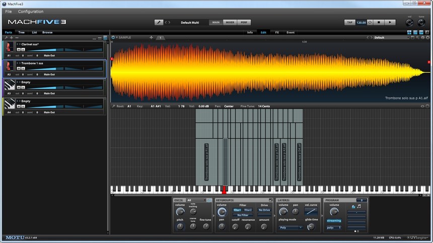 3. 取得MIDI檔後,使用SONAR X3 Professional打開MIDI檔,然後以MACHFIVE 3所提供的各種虛擬樂器音色(VST Instruments)來測試演奏的效果,及作出各種修改(如:演奏速度、力度大小、刪除音符、加入音符、移調、複製…等),並由本人使用EZ Drummer 2為主旋律配上鼓節奏;